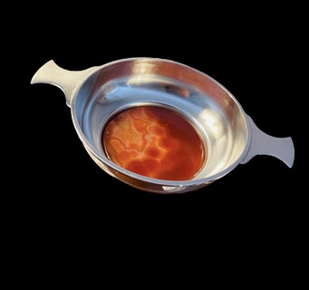 Antique Scottish Solid Silver and Agate Quaich. Hamilton & Inches, Edinburgh, 1932.